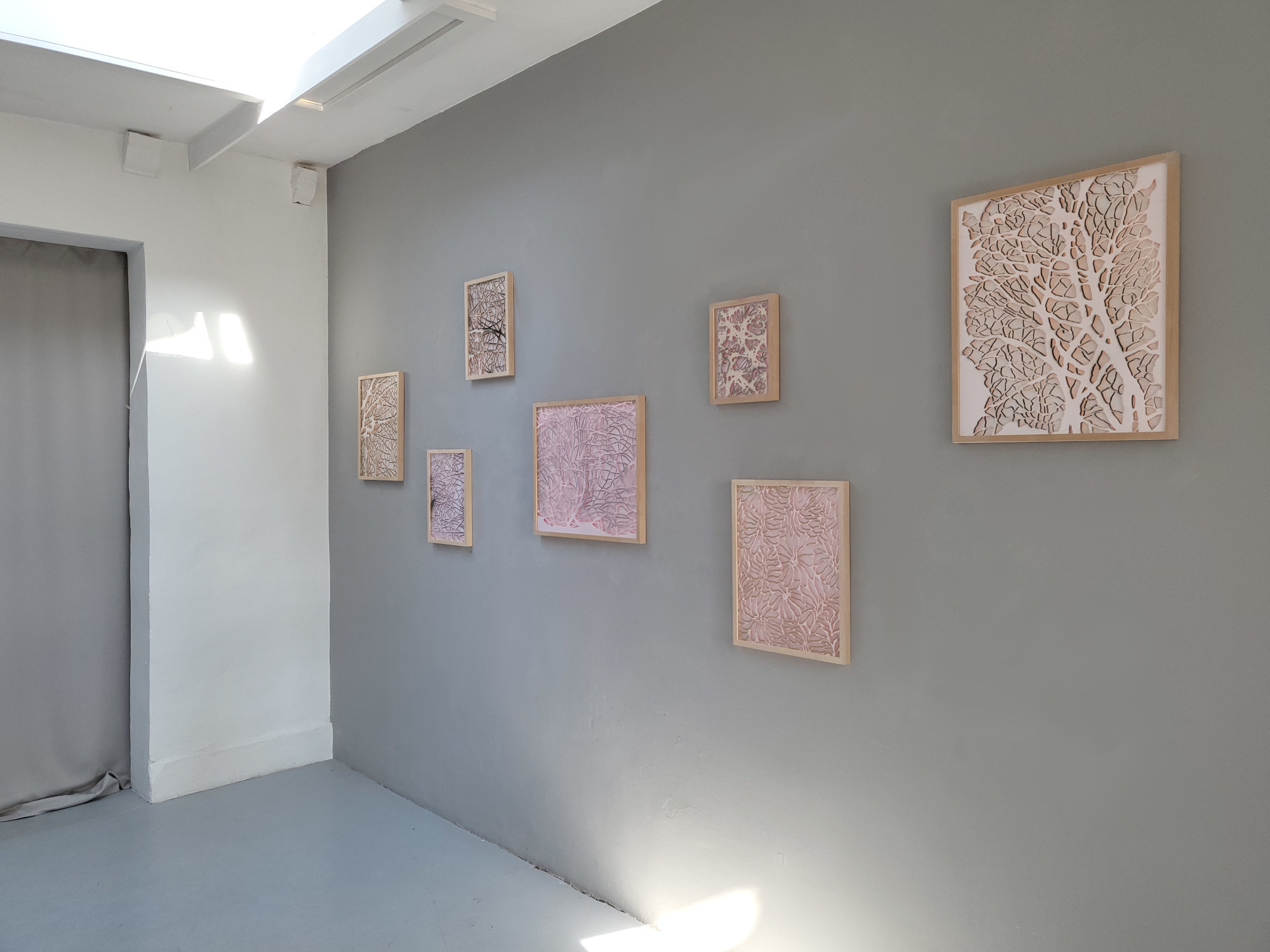 In ihrer Ausstellung nähert sich Bettina Bosch der Natur aus künstlerischer Perspektive und eröffnet neue Sichtweisen auf unsere Welt. Das Verhältnis des Betrachters zum betrachteten Objekt und zur umgebenden Umwelt wird in den Fokus gerückt und untersucht, denn spezifische Gegebenheiten und Eigenschaften – insbesondere des Lichts – beeinflussen die Wahrnehmung. Auch aus diesem Grund werden die Papierarbeiten im vorderen Teil der Galerie nicht mit Kunstlicht beleuchtet, sondern leben vom sich verändernden Tageslicht.