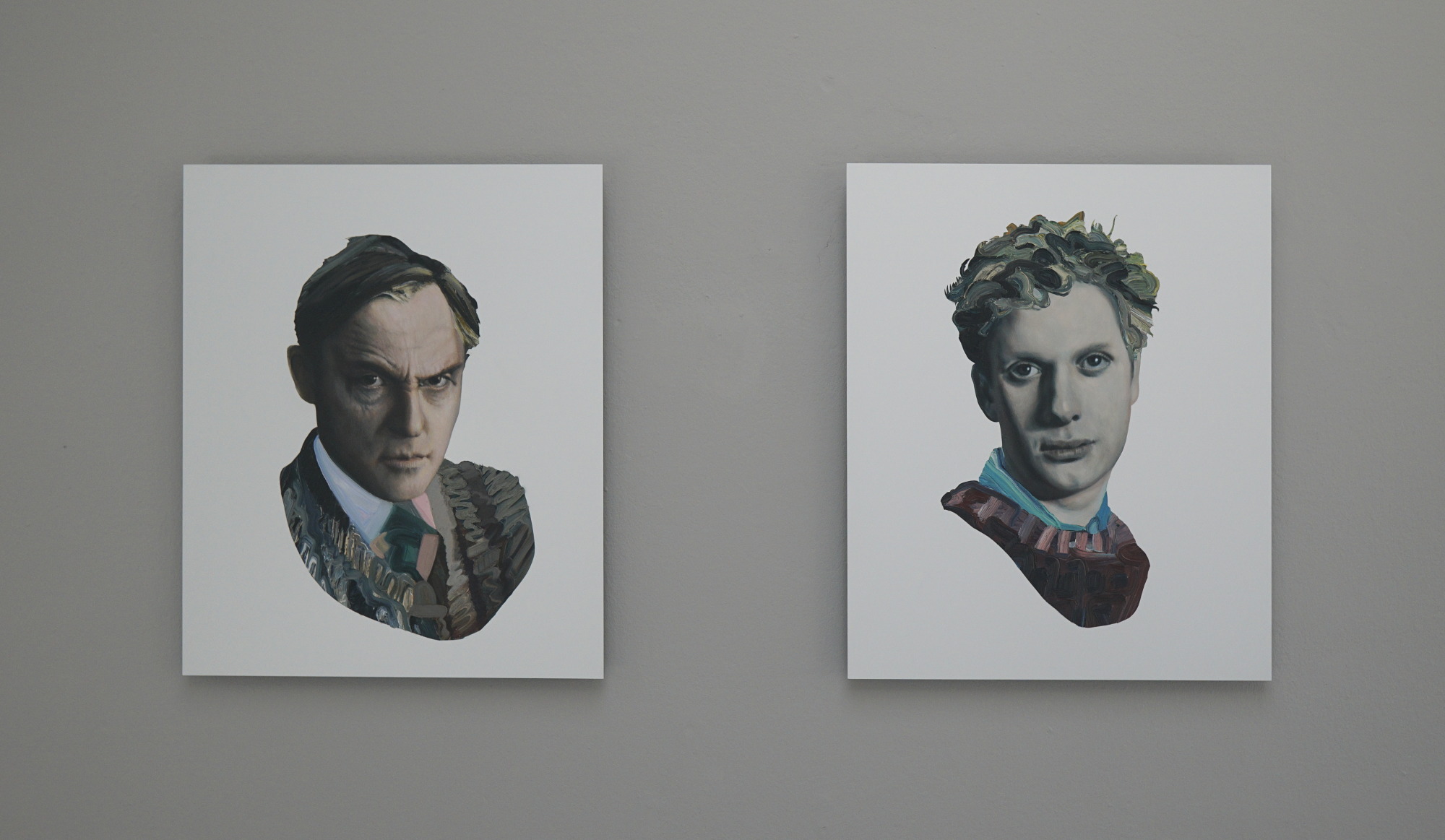 Elisabeth Bereznicki / Stanisław Ignacy Witkiewicz, 2012, Öl auf Aludibond, 60 × 50 cm / Dylan Thomas, 2013, Öl auf Aludibond, 60 × 50 cm