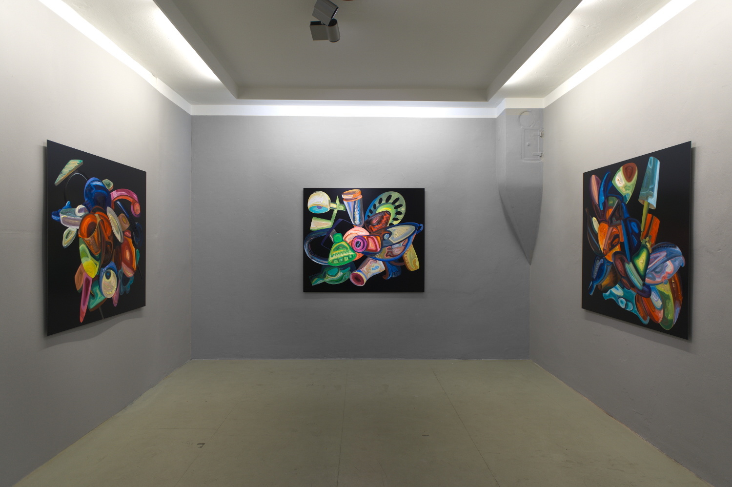 Bei der Ausstellung »ALL IN BLACK« von Elisabeth Bereznicki werden neue Bilder auf schwarzen Aludibond Platten präsentiert. Von Bereznickis Werkzyklen „Tischsituationen“ und „Hybride“ ausgehend, zeigen diese Bilder eine neue Dimension ihrer Entwicklung: der Wechsel des Malgrundes von weiss zu schwarz stellen sowohl für die Malerin als auch für den Betrachter eine neue Herausforderung dar.