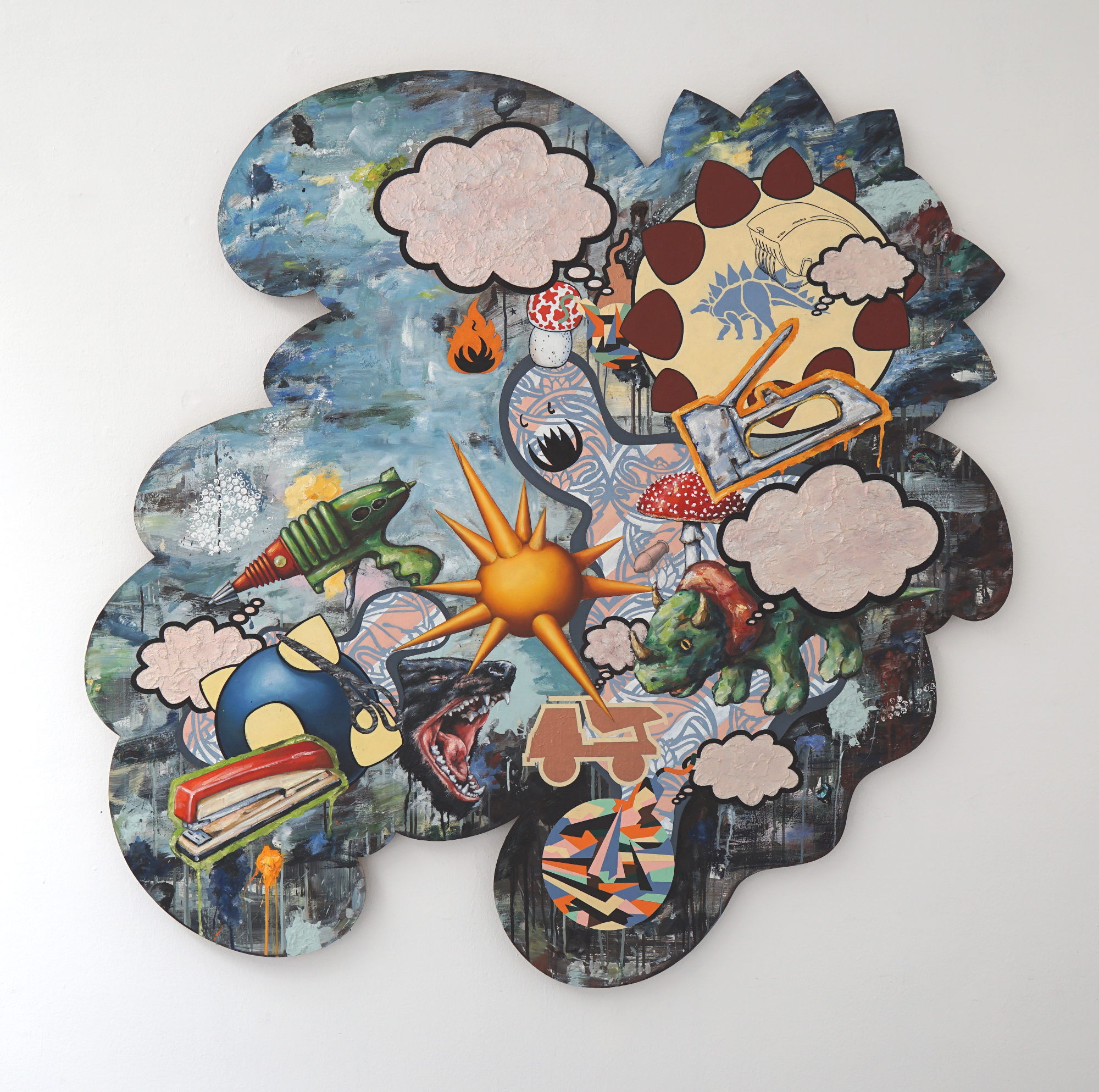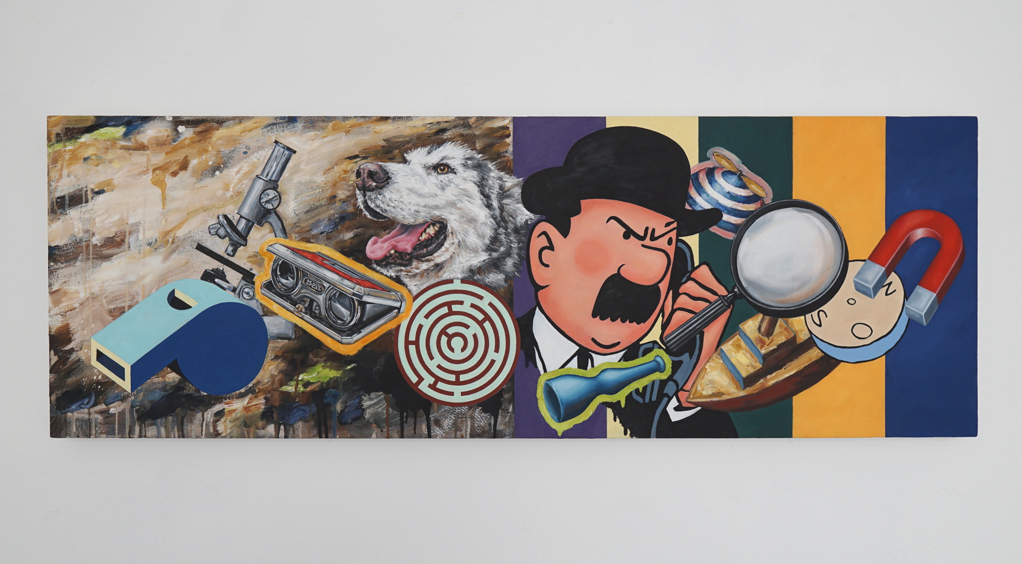 Die Galerie ist erfreut Arbeiten des Karlsruher Künstlers Jens Andres in einer Einzelausstellung zu präsentieren. In Jens Andres Gemälden werden Elemente des Informell und des Realismus, von Comics, Konkreter Kunst, der Pop-Art und des Zeitgeist zu eklektischen Ansammlungen von Ornamenten und Symbolen verbunden, die öfters durch ins Bild aufgenommene Aphorismen ergänzt werden. So findet sich der Titel der Ausstellung, »Begib dich auf vages Terrain«, auf mehr als einem Gemälde und gibt nicht nur die Richtung vor, in die der Künstler sich bewegt, sondern auch eine Botschaft, gezwitschert von subversiven Kohlmeisen, an den Betrachter.