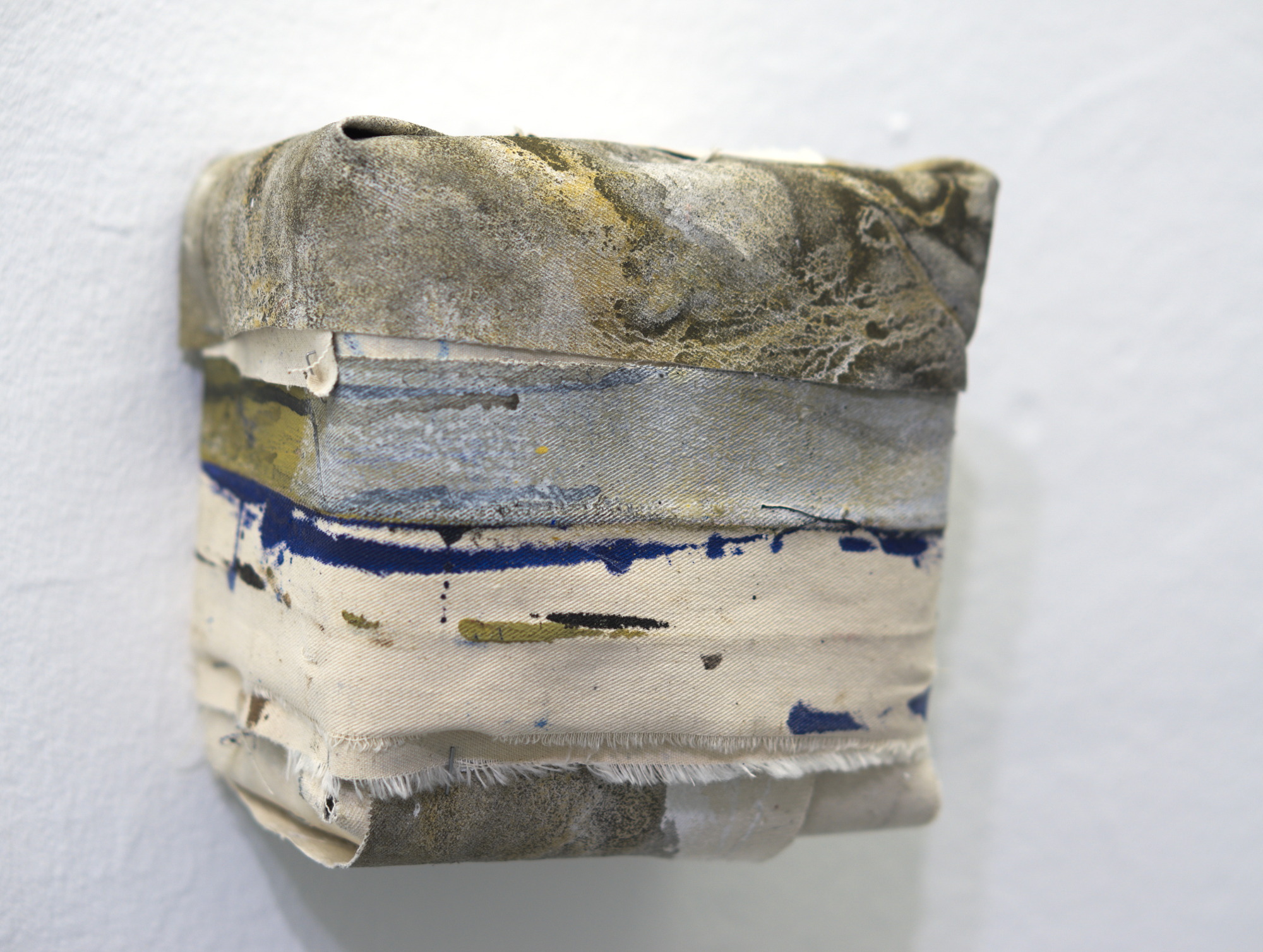 »Painting remains« 2017, recycelte Leinwand, Tinte, Acryl, 15 x 17 x 12 cm