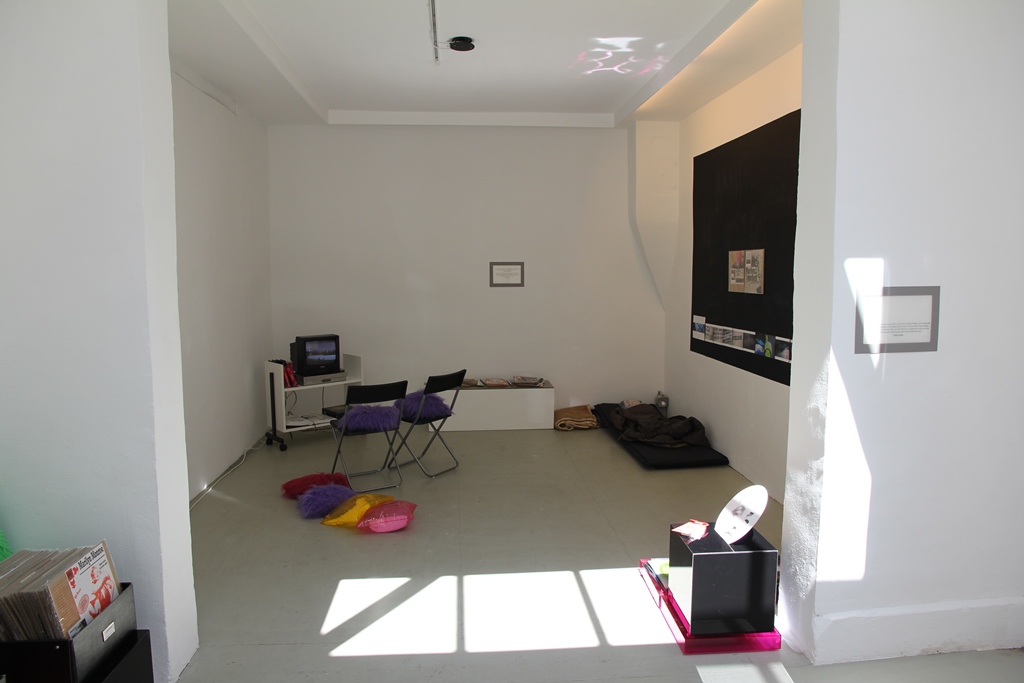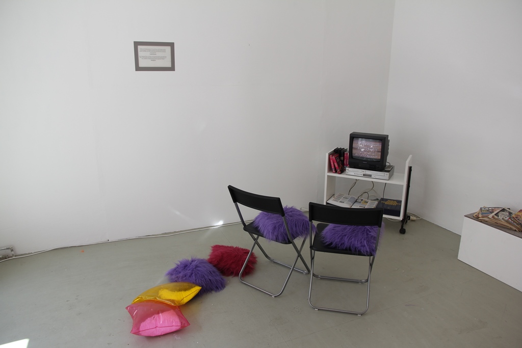 24 Stunden für 1 TV, 1 VHS Rekorder, 1 Plattenspieler, 1 Isomatte, 1 Schlafsack, VHS Bänder, Vinyl Schallplatten, 1 Künstler, 1 Hund.