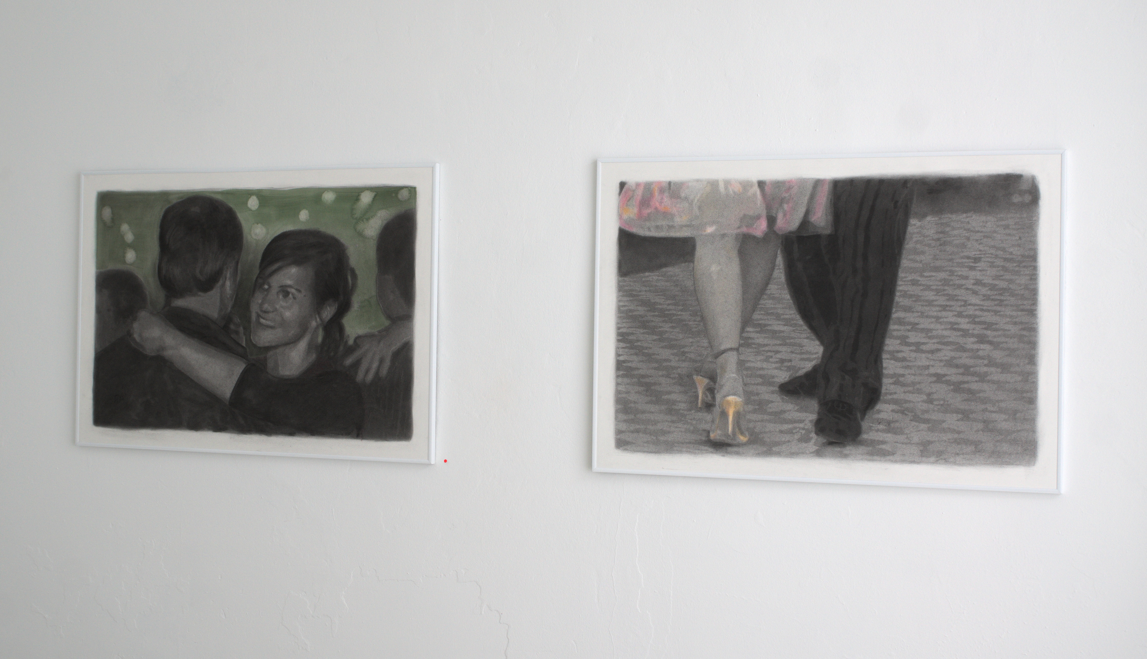 »Uschi und Willi« / Kohle, Aquarell und Pastell auf Büttenpapier, 60 x 90 cm, 2015 // »Laufenburg« / Kohle und Pastell auf Büttenpapier, 60 x 90 cm, 2016