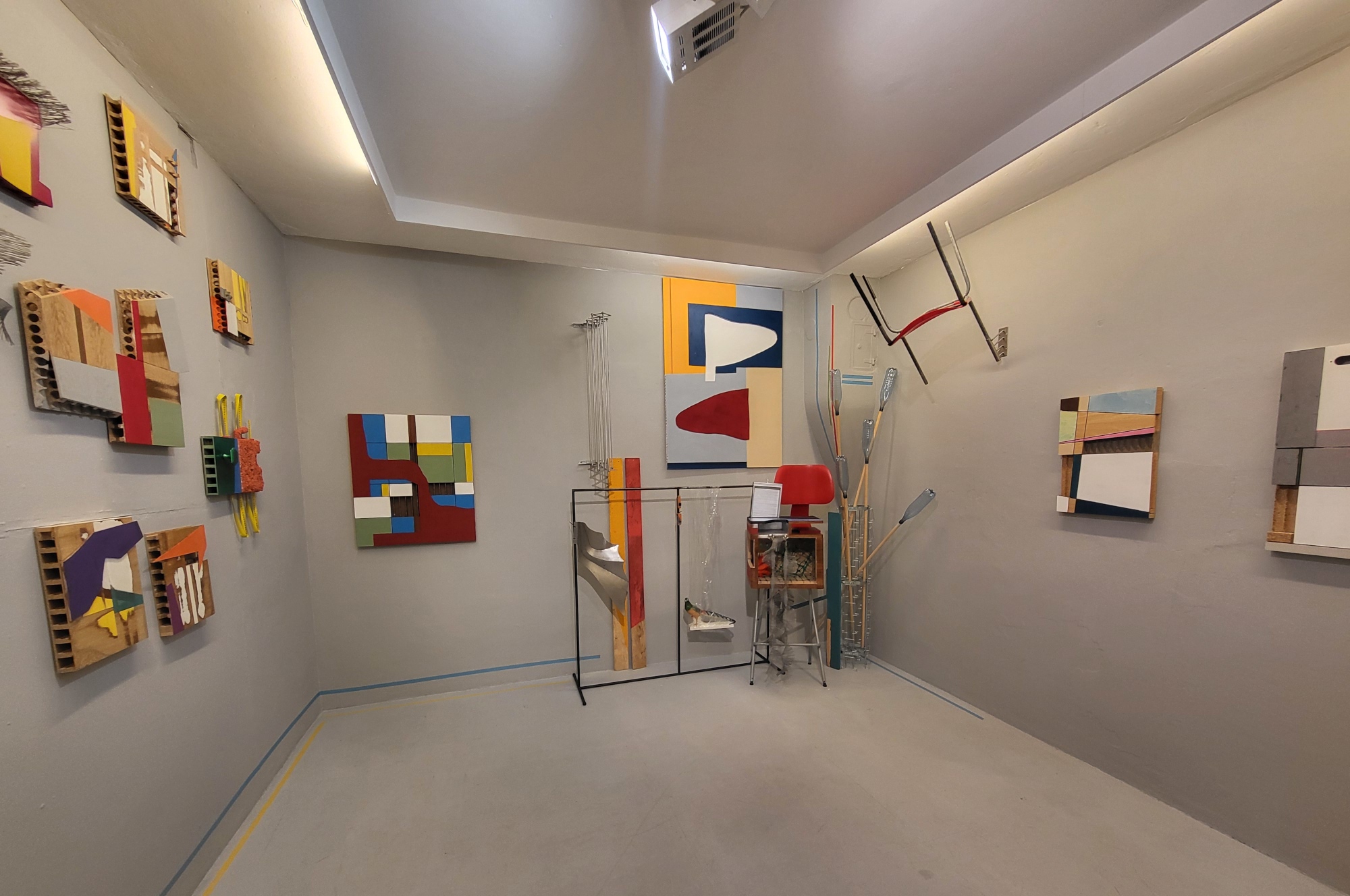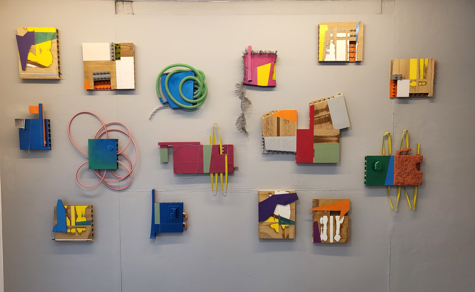 In there are pieces that decorate a room and those that define it zeigt Udo W. Hoffmann in seiner ersten Ausstellung in der Galerie Gemälde, Wandobjekte und eine großformatige Wandinstallation. Seine Malgründe für seine Malerei stellt er meist aus Türen her, deren Inneres er durch Einschnitte freilegt, so dass diese zusätzliche Komponente seinen Gemälden einen objekthaften Charakter verleiht. Auch in seinen anderen Arbeiten finden sich (gefundene) Objekte, die aus Häusern und Wohnungen stammen und den Bezug der Werke zur Architektur aufzeigen. Udo W. Hoffmann definiert durch seine künstlerischen Transformationen und Kombinationen den umgebenden Raum, was insbesondere auch in seinen in situ Arbeiten bei Interventionen in leer stehenden Häusern deutlich wird, und beantwortet damit die Frage, die der Ausstellungstitel implizit stellt.