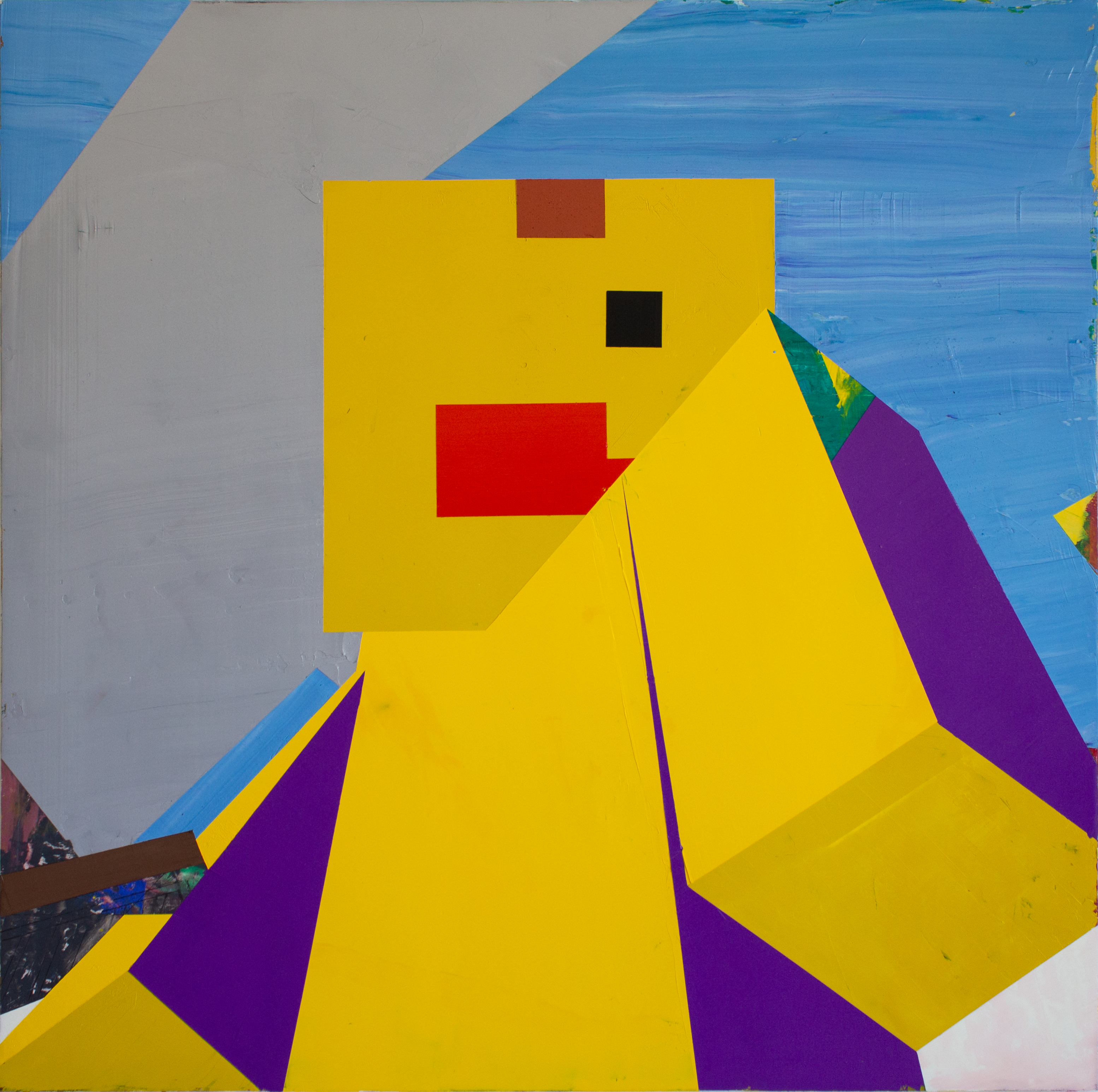 Ducky (holds his bed) _ 2022, Öl auf Holz, 152x152 cm