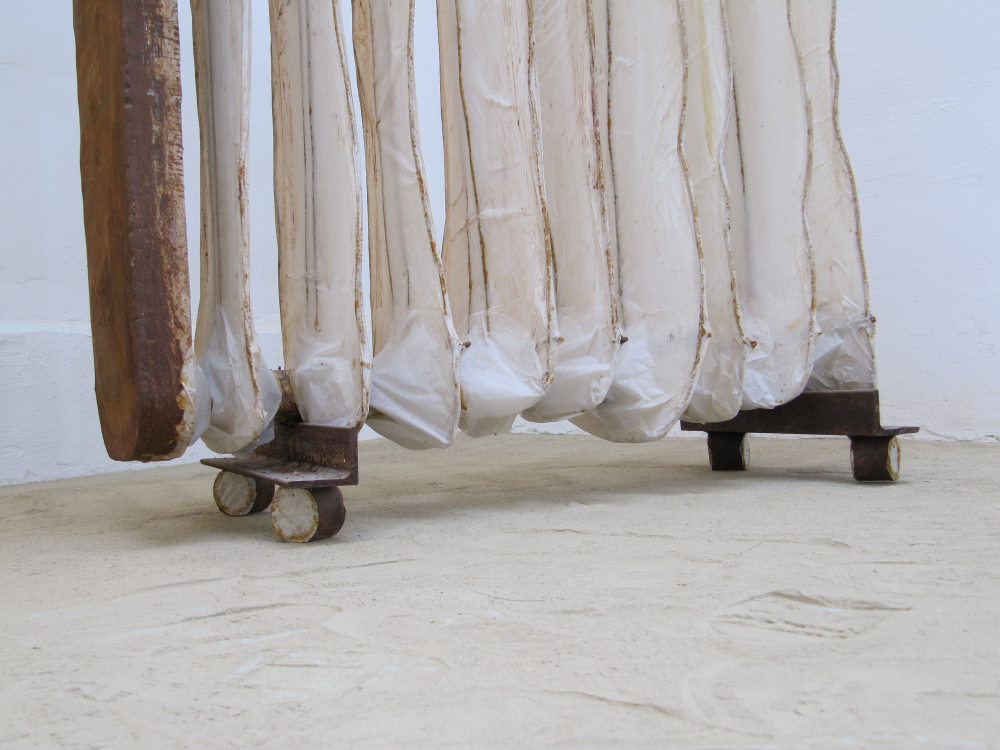Norbert Eschger arbeitet mit Wachs und Erde, während Daniel Kuttner seine Objekte vorwiegend aus Eisen und Papier fertigt.