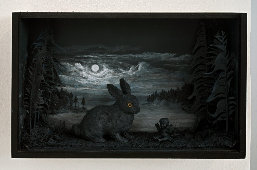 Martin Horsky stellt neben seiner in über zwei Jahren entstandene Video-Installation "metamorpheus", die mit dem Moment der Verwandlung spielt, einen Ausschnitt aus seiner 2011 entstandenen photographischen Dokumentation von Tierschädeln vor. Aus der Serie von über fünfzig unterschiedlichen Tierarten wird in der Galerie eine Auswahl in Leuchtkästen präsentiert. Panos Kounadis zeigt sein großformatiges surreales Gemälde mit dem Titel "humus sapiens" und einige seiner apokalyptischen "Wächter"-Skulpturen und verspielten Bricolage-Werken aus seiner über zwanzig-jährigen Schaffensperiode. Zusammen gestalten die beiden Künstler einen beinahe sakralen Raum, wäre da nicht das humoristische Augenzwinkern, das der Ausstellung inne wohnt.
