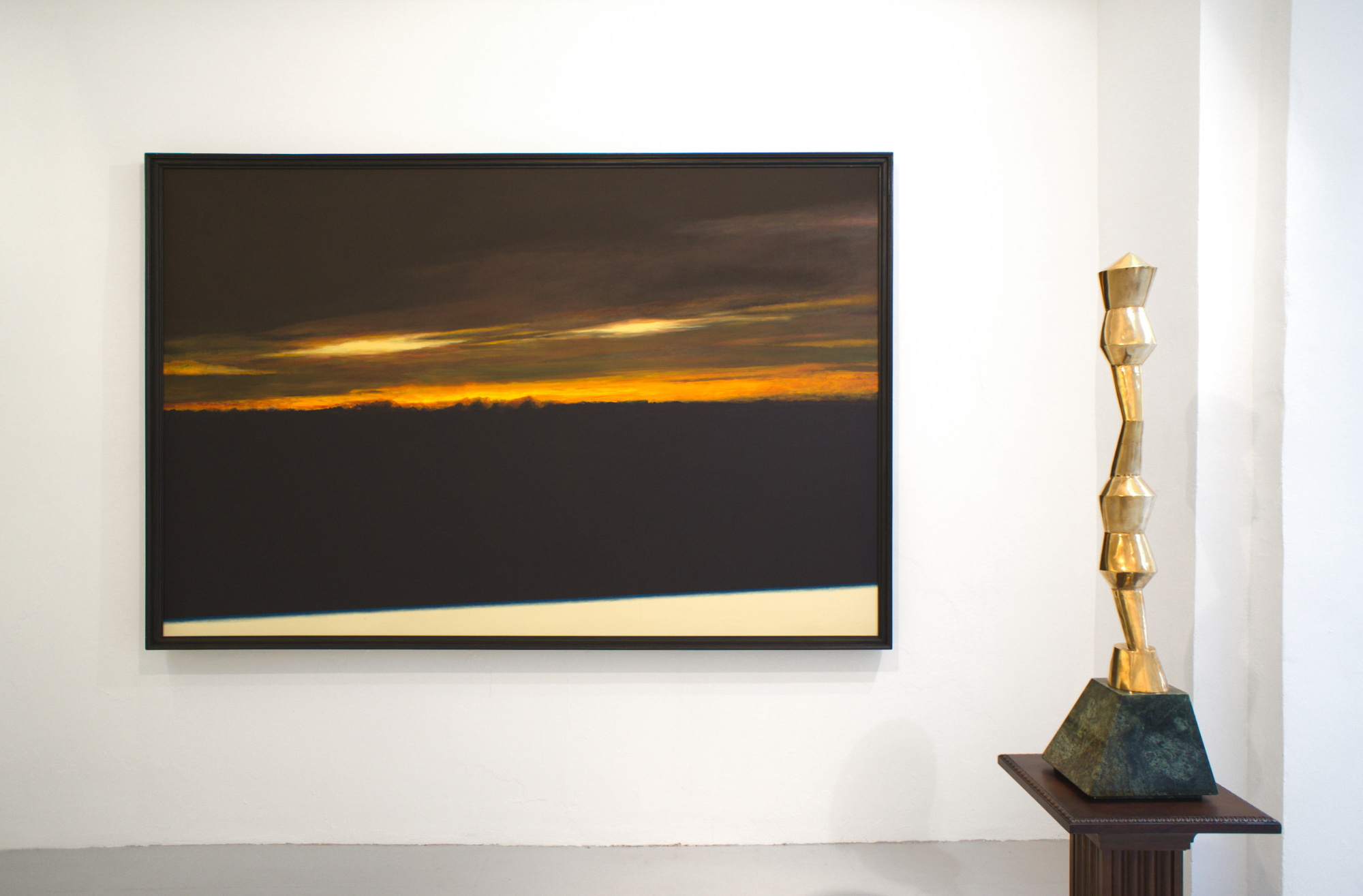 Jeszcze wschód słońca (Noch Sonnenaufgang), 1991, Acryl auf Leinwand, 160 x 240 cm / Akt, 2013, Bronze, 100 x 13 x 14 cm