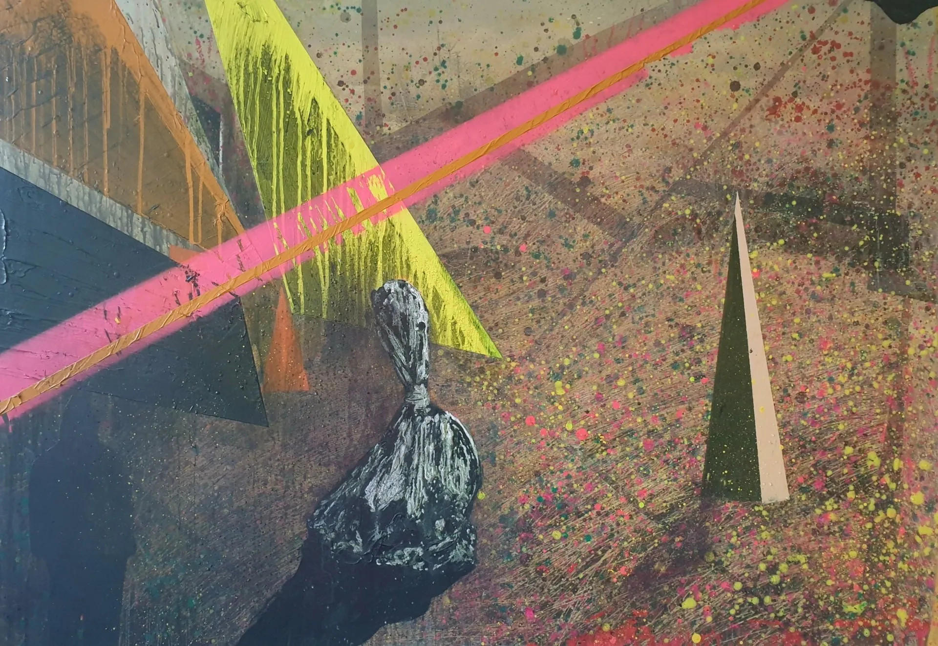 Acryl, Varnish, Papier auf Leinwand,