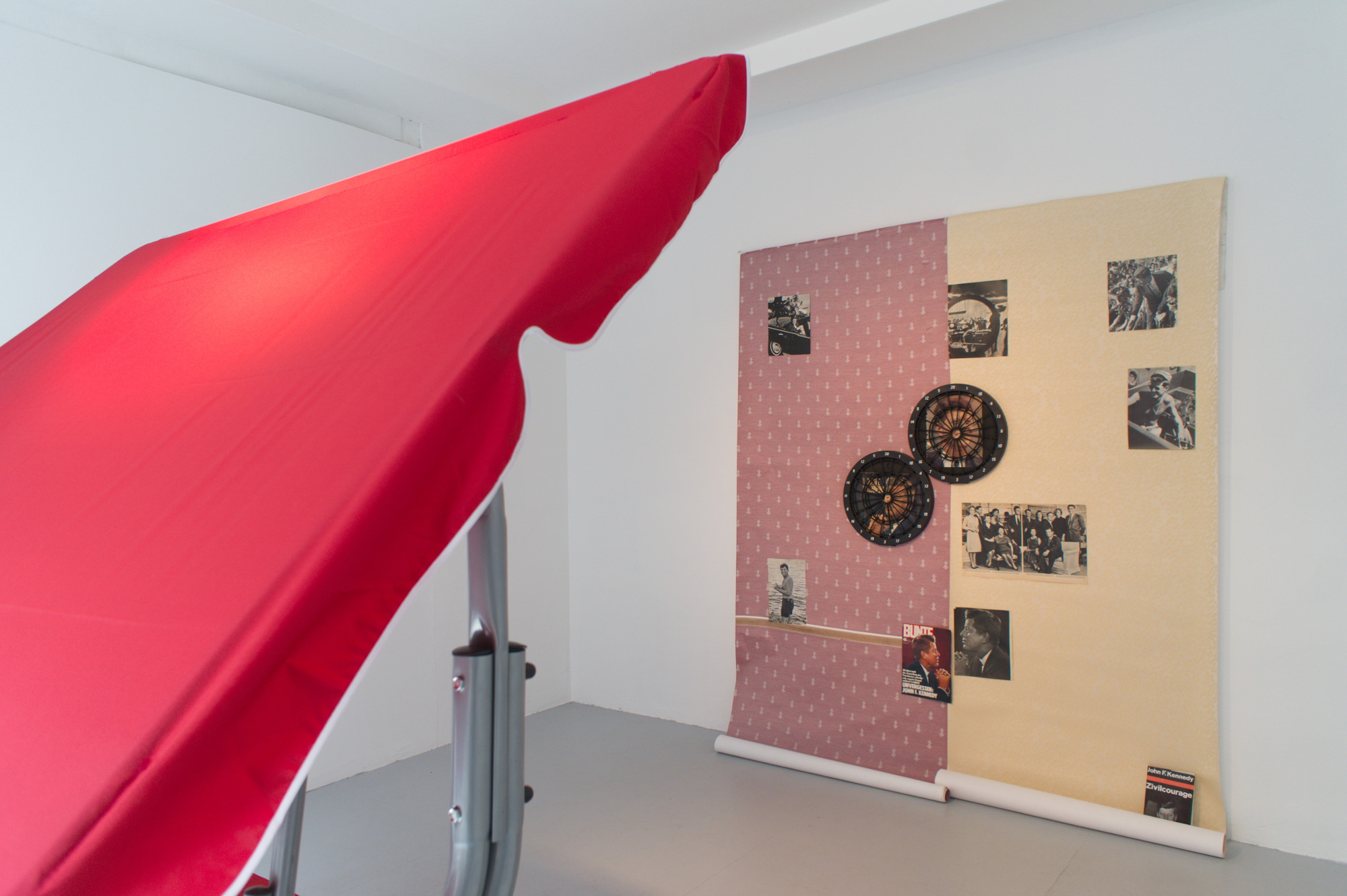 Hollywoodschaukel, Zeitungsausschnitte auf Tapete,