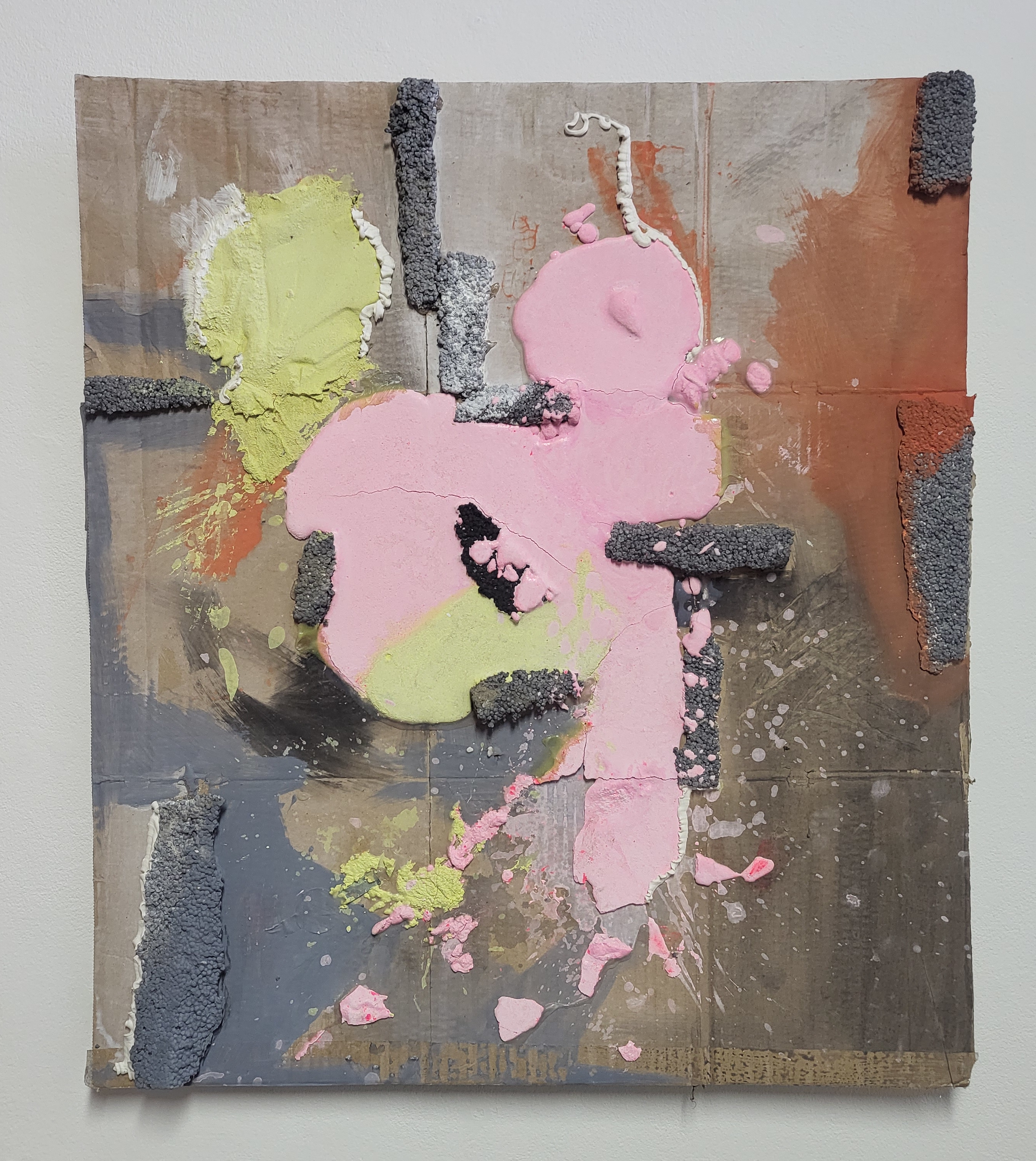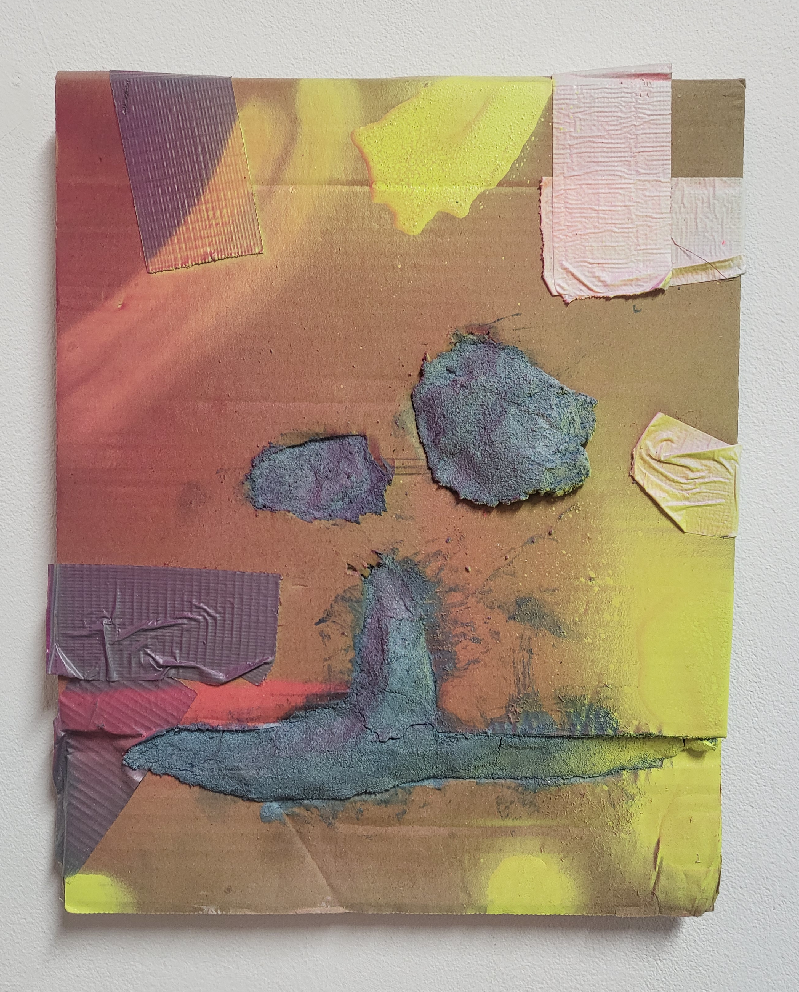 Seit 2017 erforscht er ein neues Material für seine Kunst: Beton, welches in seiner Eigenschaft als Gegenteil des fragilen Tons betrachtet werden kann. Die serielle Arbeit Umverpackung (2018), in der das raue robuste Material in Kombination mit der eingearbeiteten Farbwahl ein unkonventionelles Ergebnis kreiert. Es ist eine Seltenheit, dass der Baustoff Beton künstlerisch in solch einer Vielfalt eingesetzt wird. Für Paul Ahl bekommt der Beton, welcher in der zweiten Hälfte des 20. Jahrhunderts als Hauptbaustoff in etlichen Großstädten verwendet wurde, seinen markanten Charakter durch die Rohheit. Rohheit wiederum kann als Abwesenheit von jeglicher ästhetischen Anpassung verstanden werden. Er gießt seinen Beton in die industriell produzierten Verpackungsmaterialien, nimmt nach der Trocknung die Kartonage ab und vollendet und akzentuiert schließlich das Werk mithilfe von Pigmenten in Pulverform mit Wasser. Das Resultat ist ein abstrakt wirkendes Gebilde, welches allerdings aus unserem konkreten Alltag – dem Verpackungsmaterial – entstanden ist. Durch diesen Widerspruch zwischen abstrakt und konkret entsteht ein Spannungsfeld, das Ahls Werk eine Außergewöhnlichkeit verleiht.